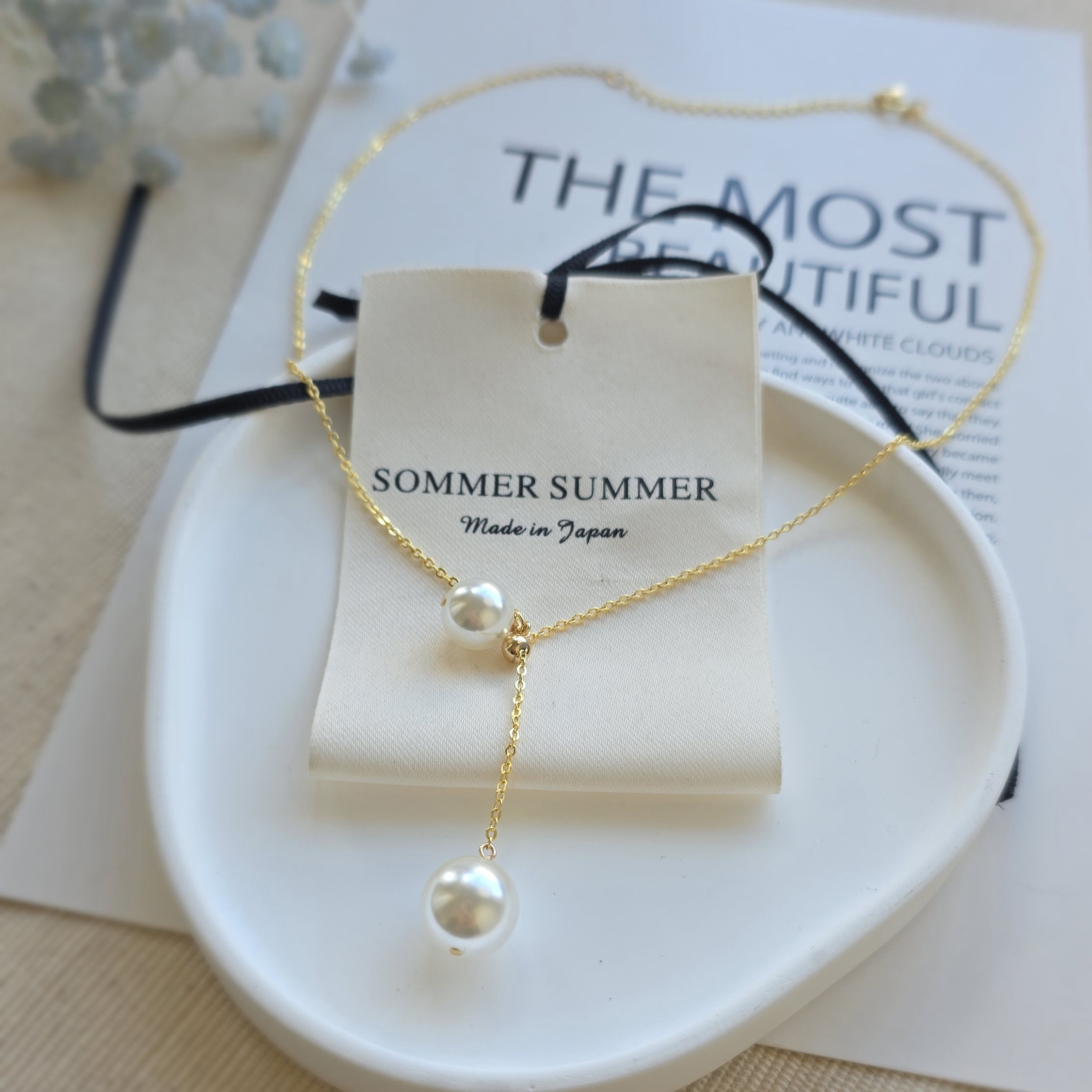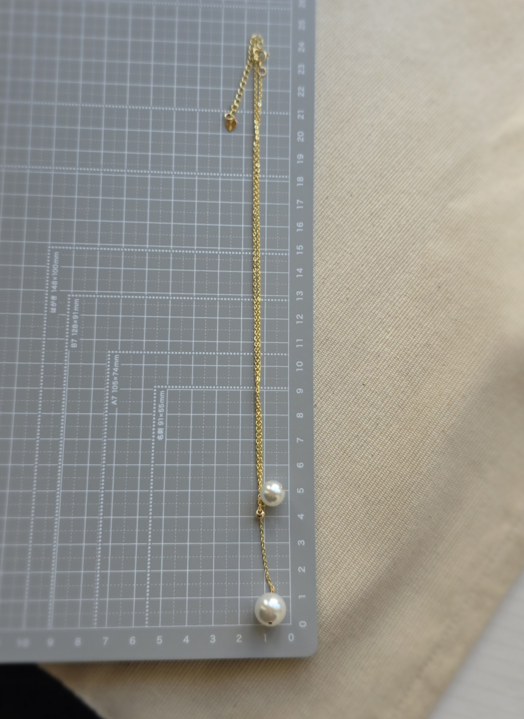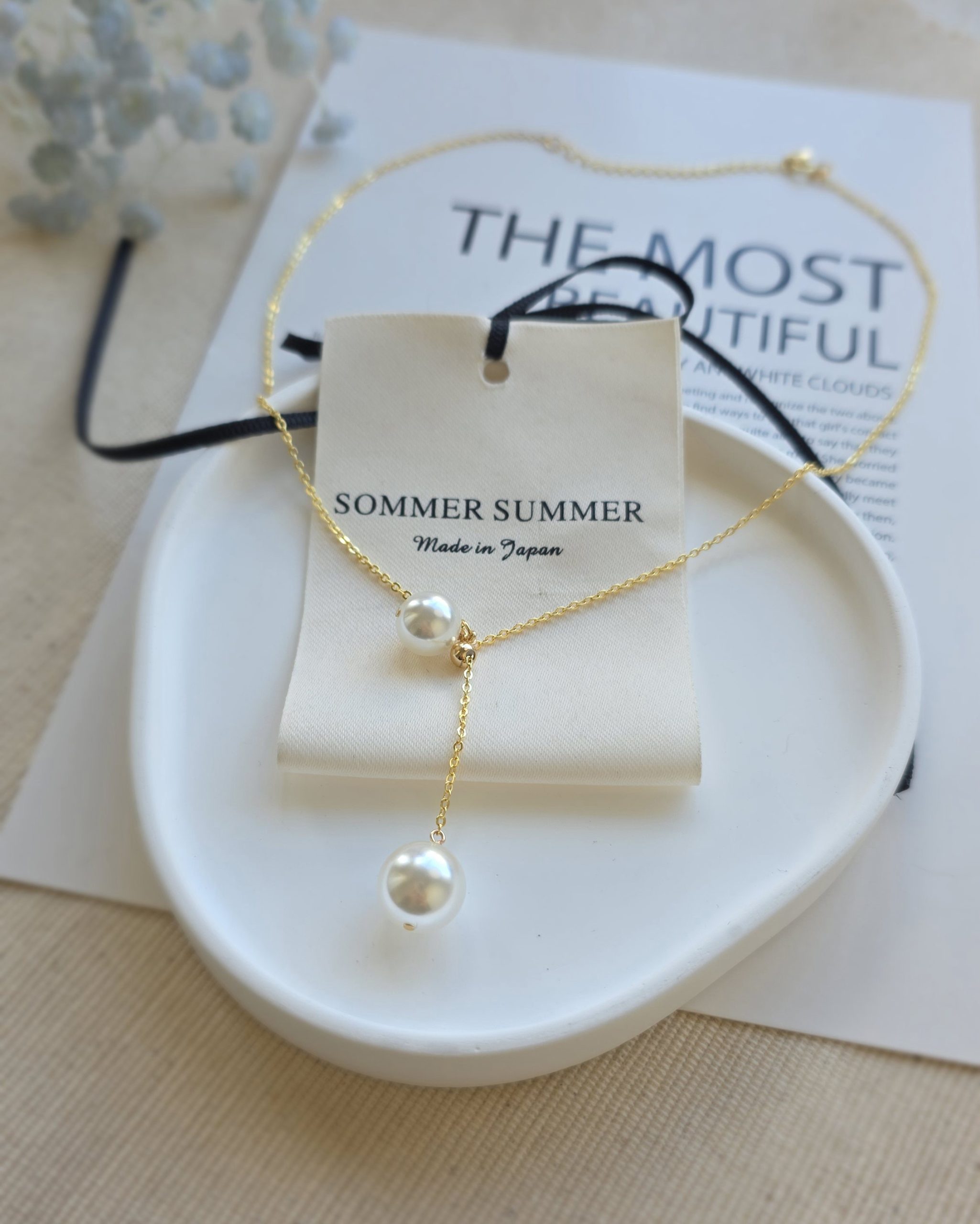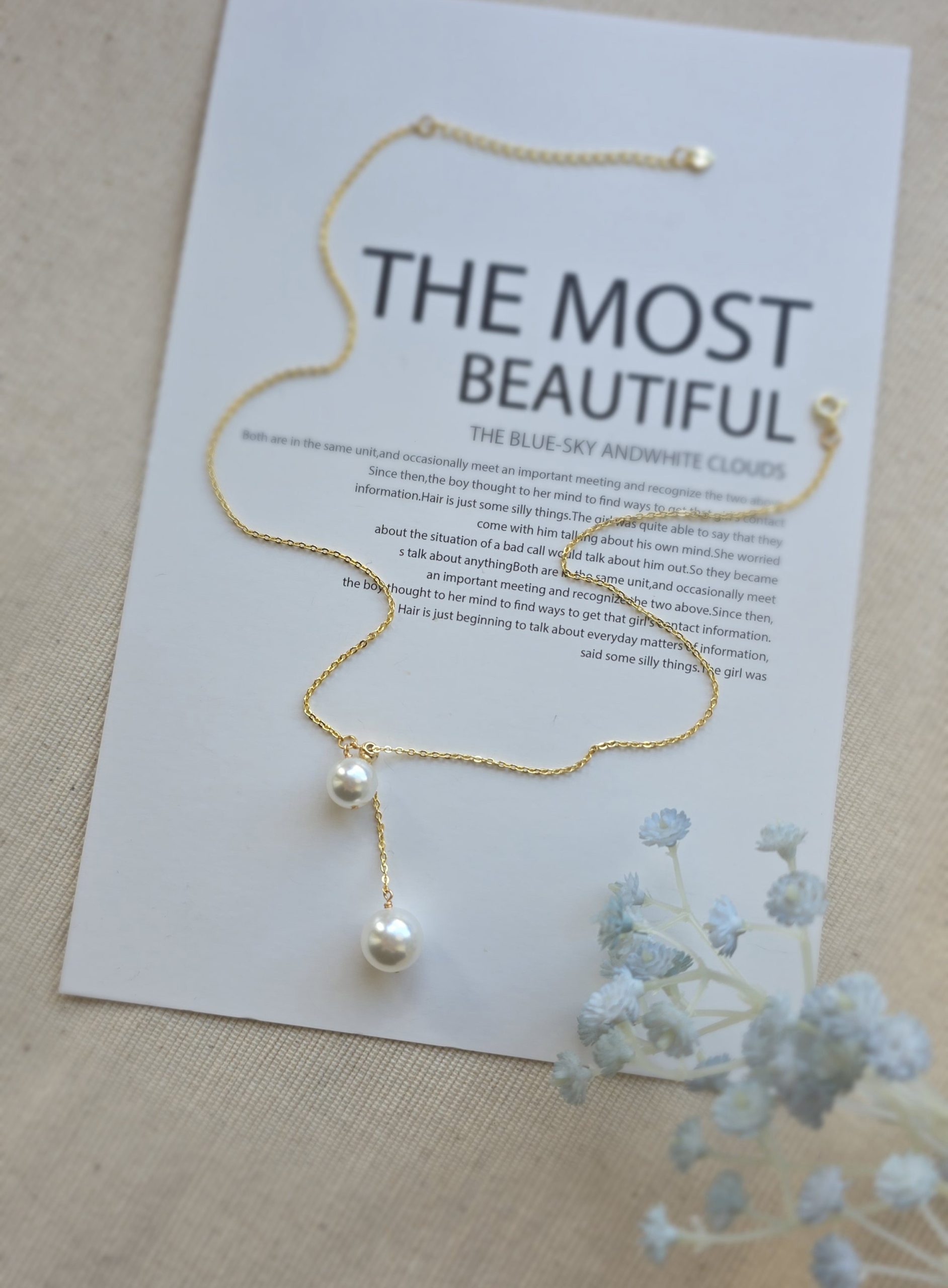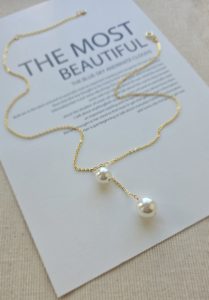 ♡大小2粒のパールが胸元で揺れるネックレスです。