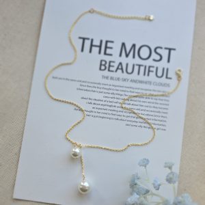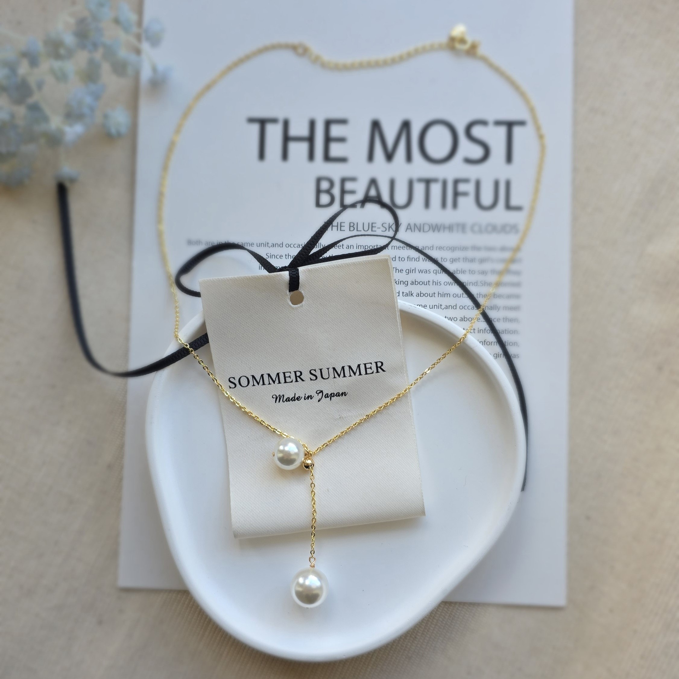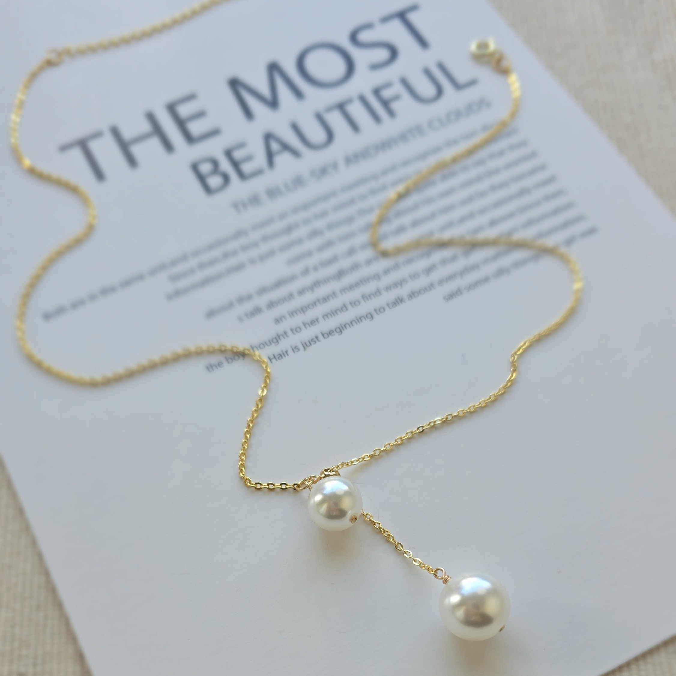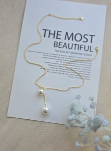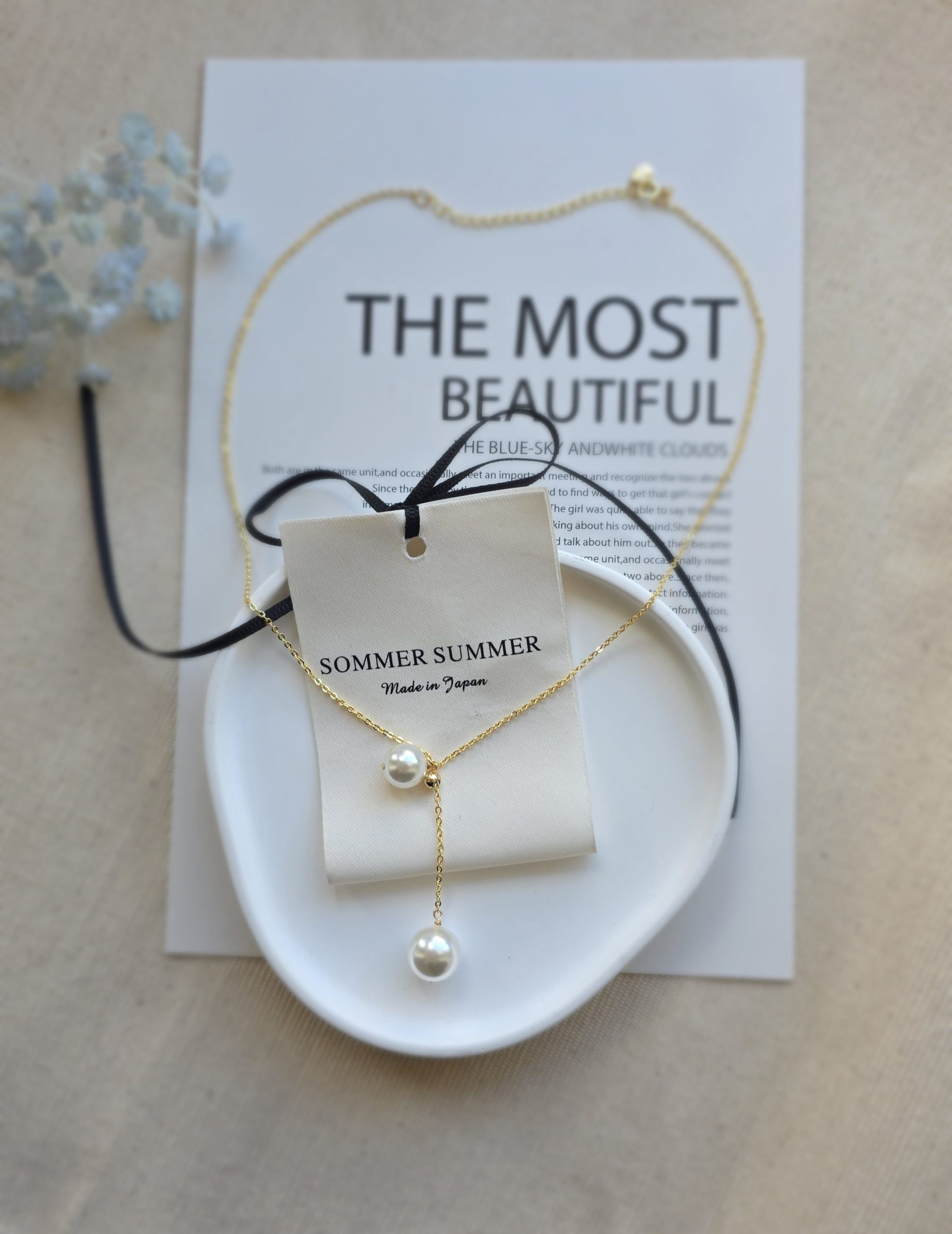 ♡大小2粒のパールが胸元で揺れるネックレスです。