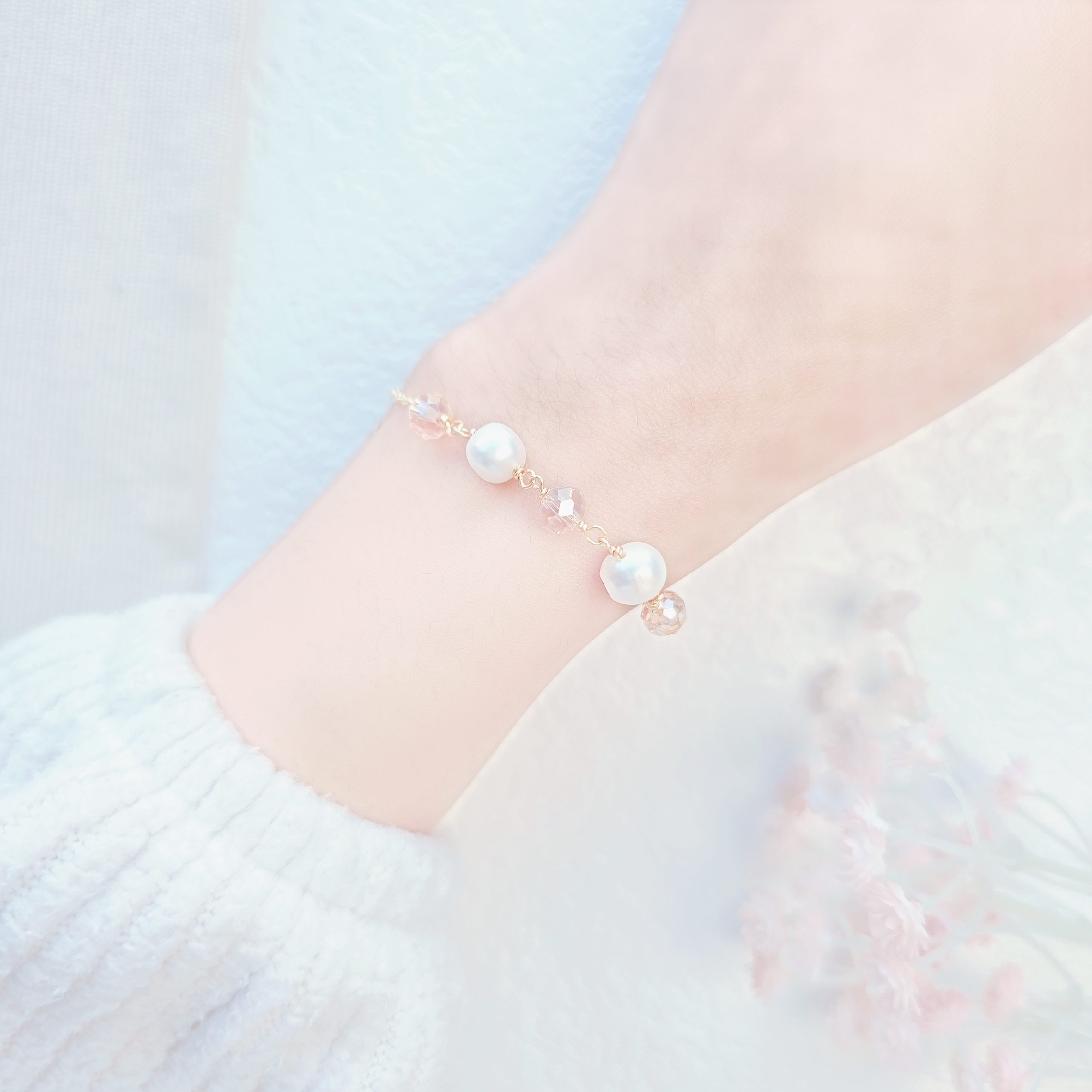 B406-1 ローズクォーツ×パールブレスレット|ピンク|天然石|水晶|誕生石も選べる|パワーストーン|手元を華やかに彩る大人気アイテム/sommer summer/sscrystals
